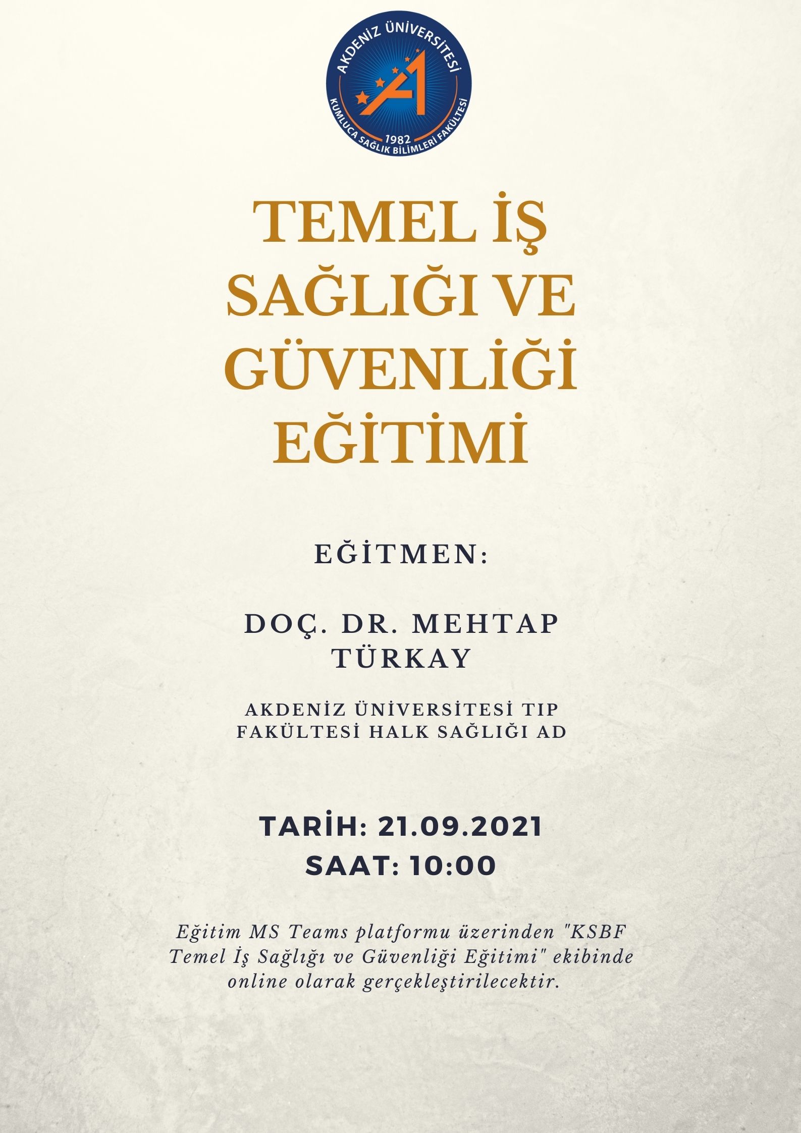 - Fakültemiz Hemşirelik ve Çocuk Gelişimi Bölümü 2, 3 ve 4. sınıf öğrencileri için 21.09.2021 tarihli Temel İş Sağlığı ve Güvenliği Eğitimi Afişi